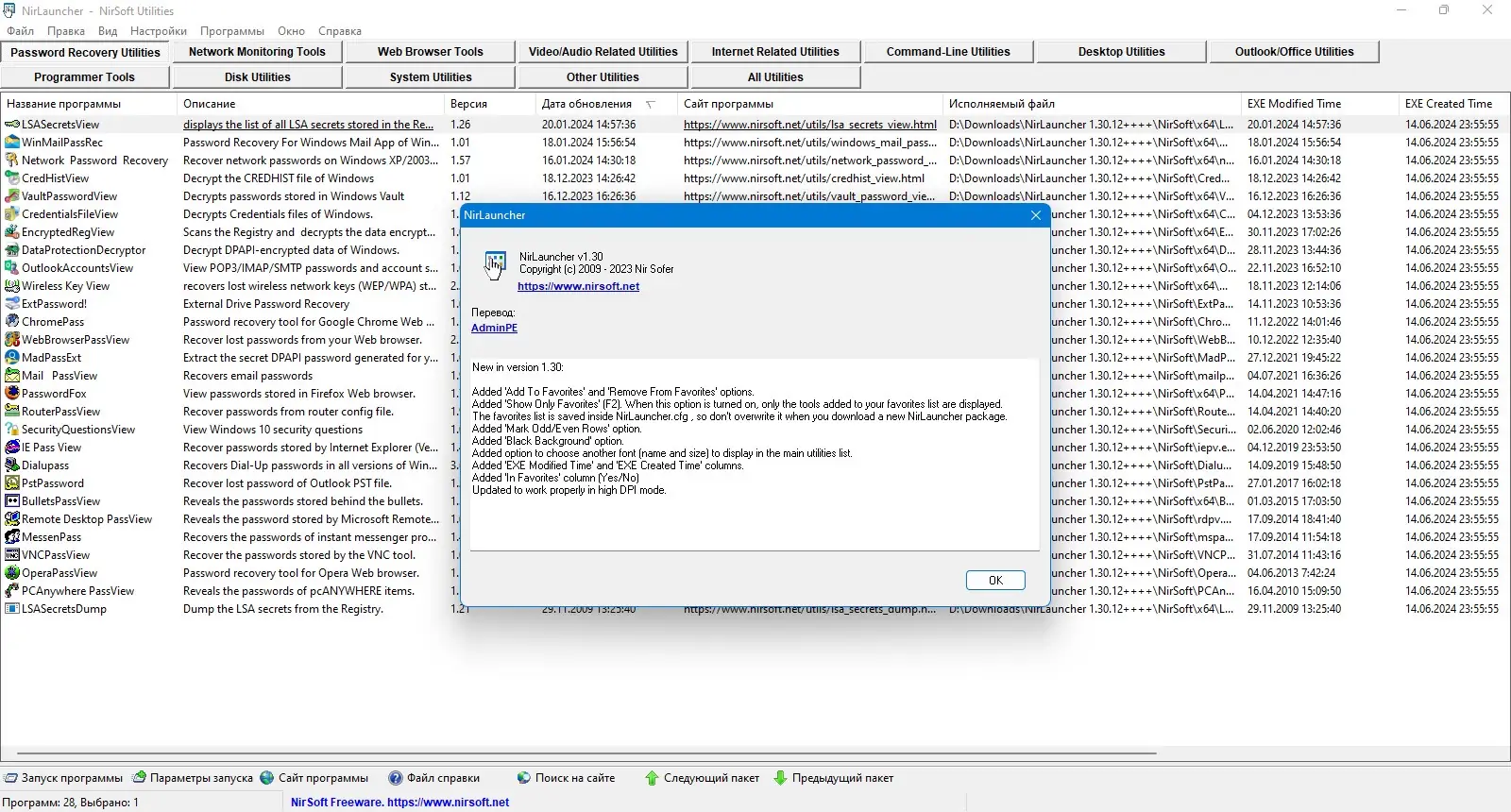 - Запустить исполняемый файл NirLauncher.exe или аналогичный для начала работы.