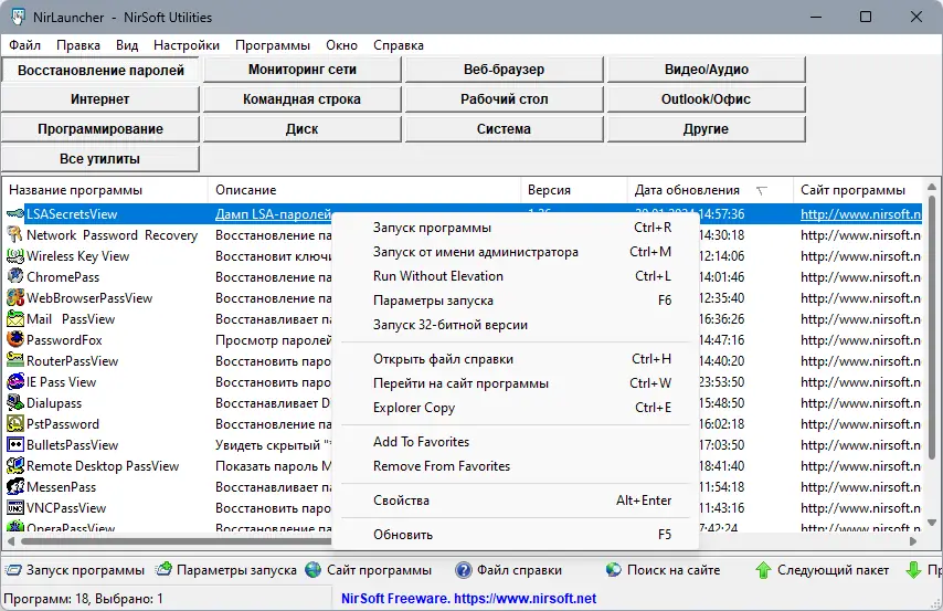 - Запустите исполняемый файл NirLauncher или соответствующие утилиты непосредственно из папки.