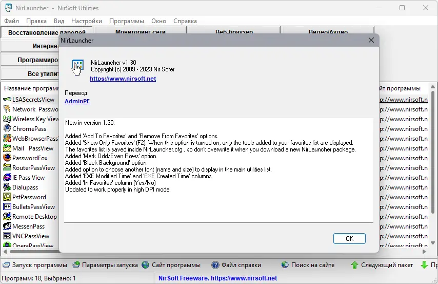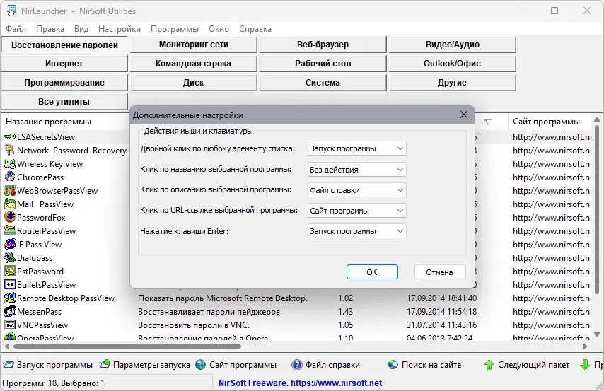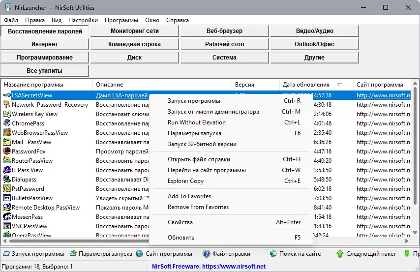 НирЛаунчер — универсальный пакет из более чем 200 портативных утилит, предназначенных для повседневных задач на компьютере. Он включает инструменты для редактирования контекстного меню проводника, работы с сетью, восстановления паролей почтовых клиентов и браузеров, работы с дисками, а также управления шрифтами. Благодаря автоматическому определению разрядности системы, программа удобно запускает нужные версии утилит для 32 или 64-битных систем, что делает её универсальным решением для разных конфигураций.