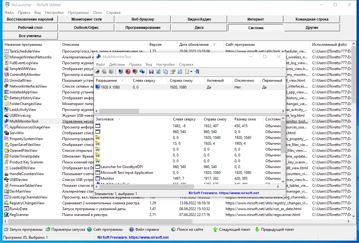 Данная программа является портативной и не требует установки. Просто скачайте архив с файлом пакета, распакуйте его на USB-носитель или в любую папку на компьютере и запустите файл NirLauncher.exe.