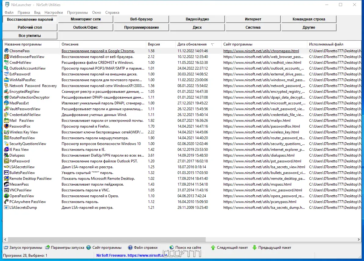 НirLauncher – универсальный пакет из более чем 200 портативных утилит, предназначенных для ежедневного использования на компьютерах под управлением Windows. Этот набор включает полезные инструменты для редактирования контекстного меню проводника, работы с сетью, восстановления паролей почтовых клиентов и веб-браузеров, а также дисковые утилиты для работы с жесткими дисками, просмотра cookies, кэшированной информации и управлением шрифтами. NirLauncher автоматически определяет разрядность системы (x32 или x64) и запускает соответствующие версии утилит, обеспечивая высокую совместимость и удобство использования.