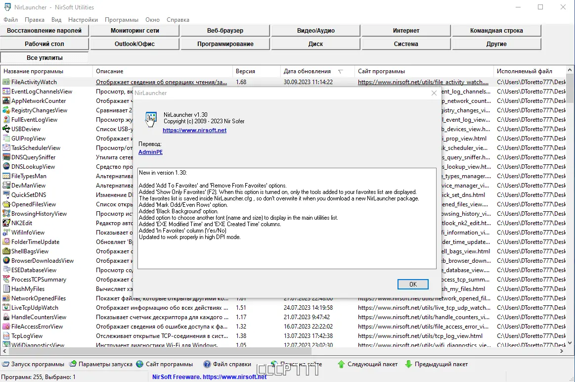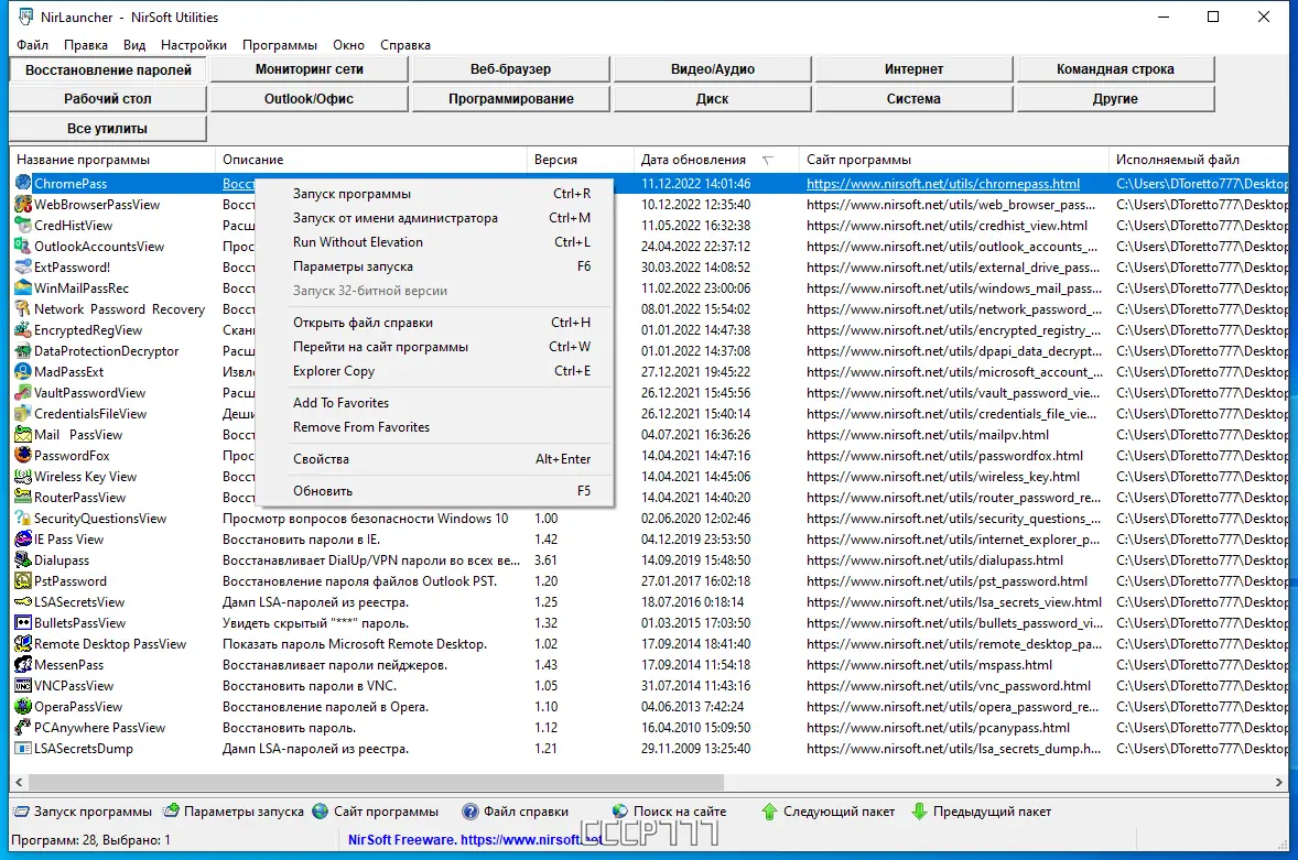 NirLauncher — это универсальный пакет из более чем 200 портативных утилит, предназначенных для быстрого и эффективного решения разнообразных задач на компьютере. Эта программа подходит для ежедневного использования и не требует установки, что делает её особенно удобной для работы с любого USB-носителя. NirLauncher содержит набор инструментов для работы с сетью, восстановления паролей, управления файлами и браузерами, а также для редактирования контекстного меню проводника. Программа автоматически определяет разрядность системы (x32 или x64) и запускает соответствующие версии утилит, обеспечивая максимальную совместимость. Благодаря простым в использовании меню и удобной сортировке утилит по различным критериям, пользователь быстро найдет нужную программу для выполнения конкретных задач.