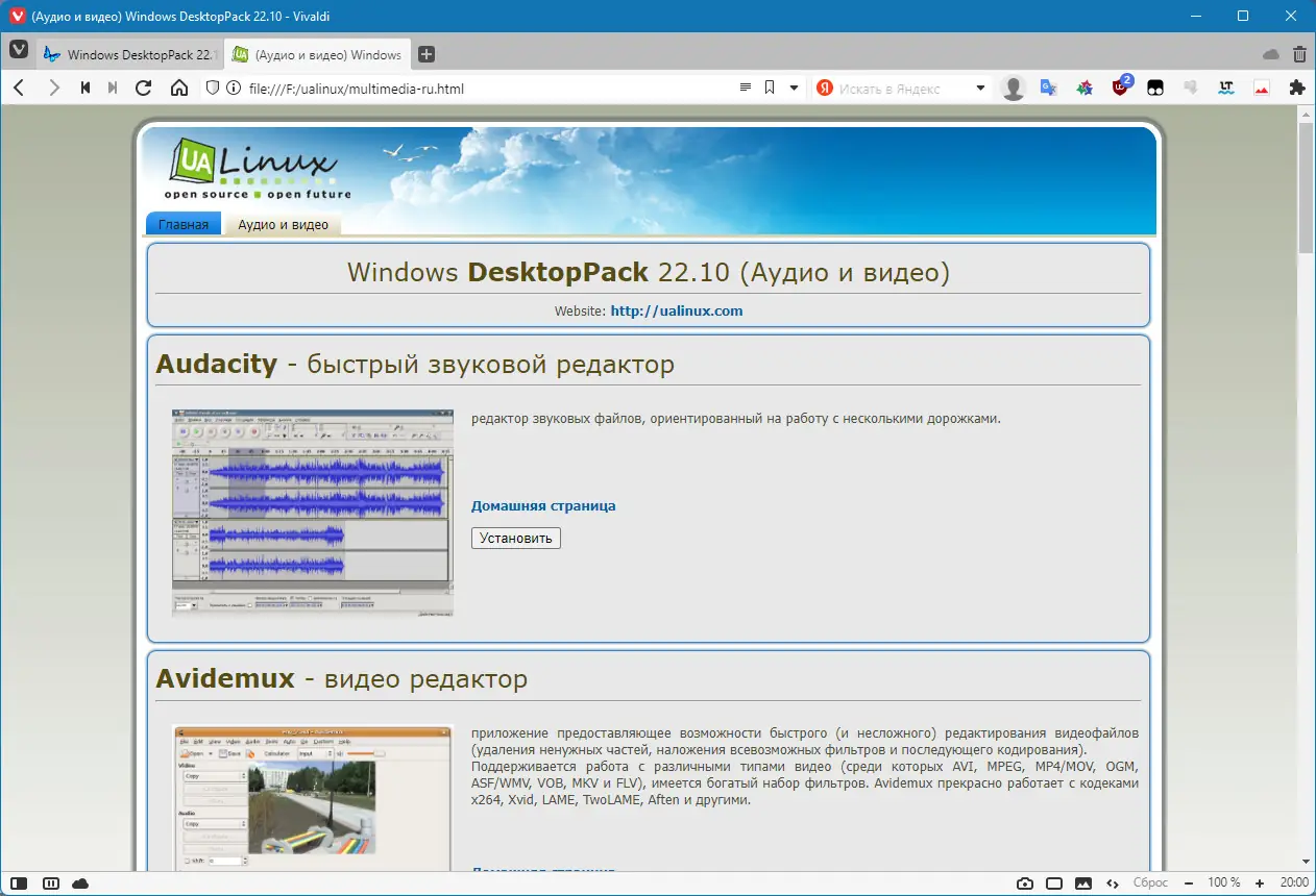 - Мультимедийные инструменты — Audacity, VLC, HandBrake, Kodi