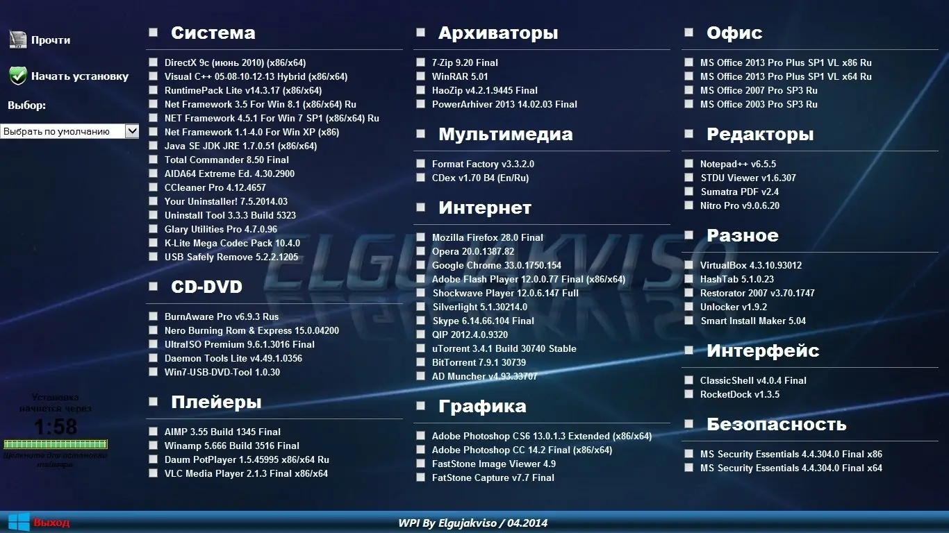 WPI — это сборник наиболее необходимых программ, предназначенных для автоматической установки на чистую операционную систему. Поддерживаются системы Windows 7, 8/8.1, 10 и 11, включая варианты x32 и x64 Bit. Вся представленная софт-сфера зарегистрирована и не требует активации. Благодаря удобному интерфейсу и автоматизации, установка занимает минимум времени и усилий, что делает этот сборник незаменимым помощником для формирования готового к работе образа системы.