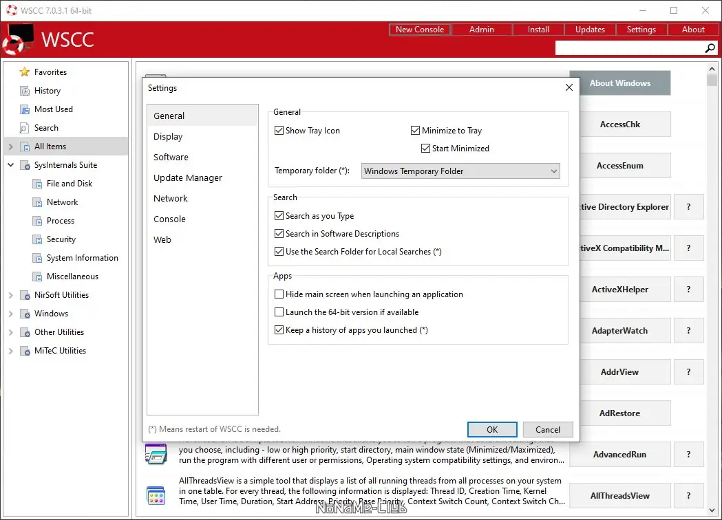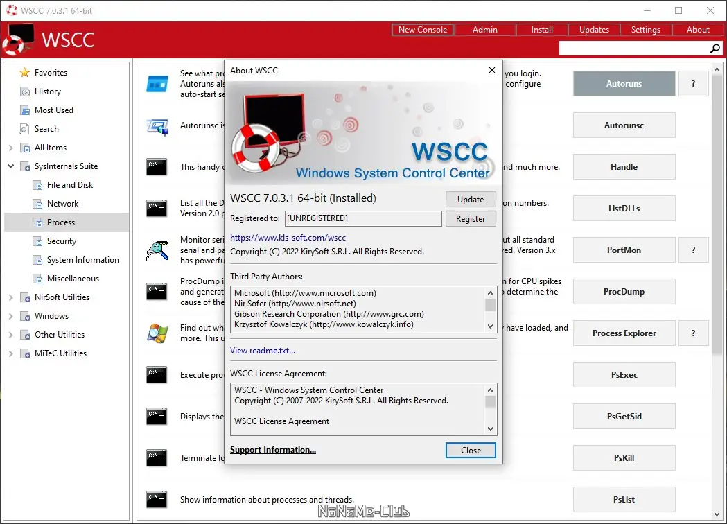 WSCC — портативная оболочка, объединяющая мощные утилиты для системного администрирования и диагностики, основанные на пакетах Sysinternals Suite и NirLauncher. Она работает без установки и позволяет эффективно управлять различными инструментами Windows и сторонними утилитами.