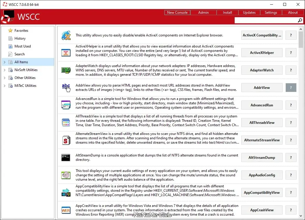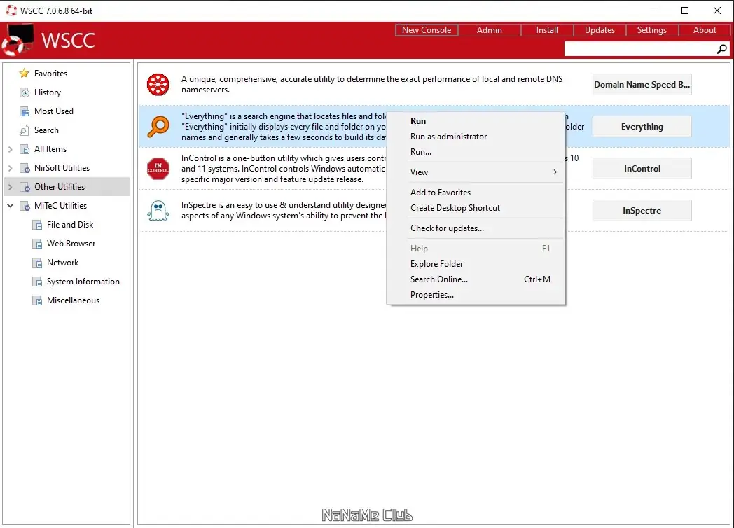 WSCC — это мощная портативная утилита, объединяющая пакеты Sysinternals Suite и NirLauncher, позволяющая удобно управлять системными инструментами без установки.