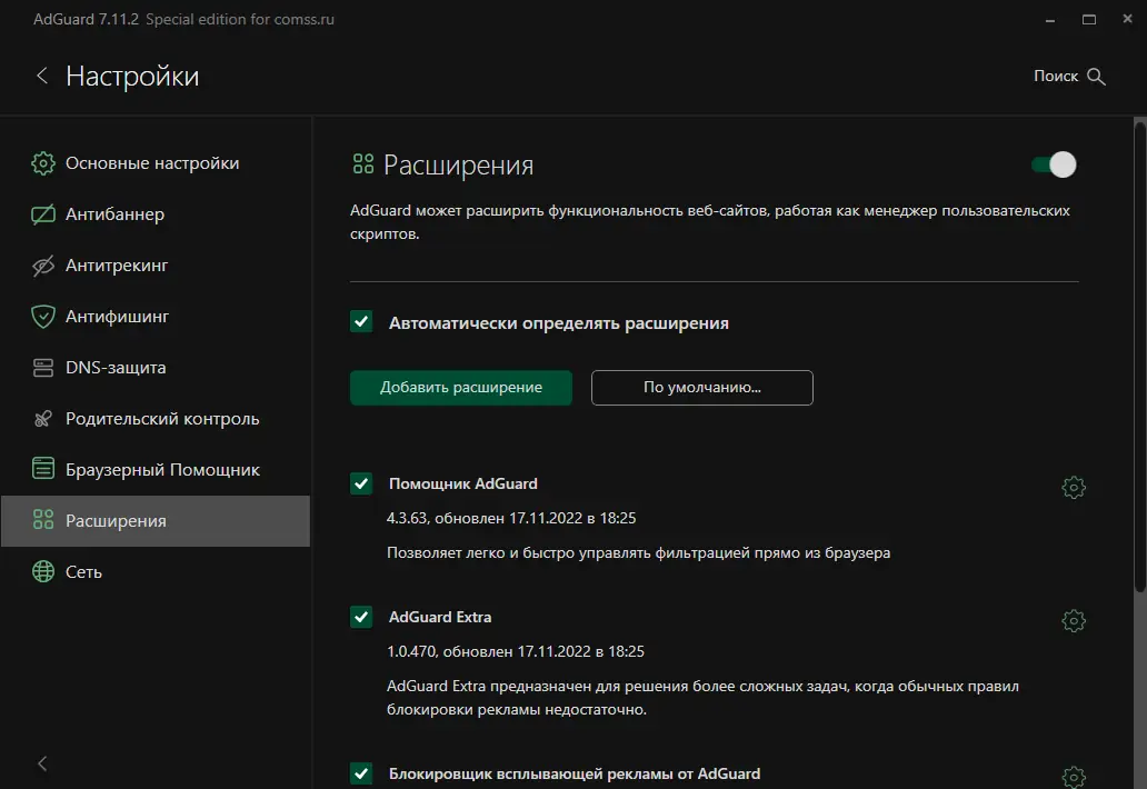 - Эффективная блокировка рекламы и вредоносных сайтов