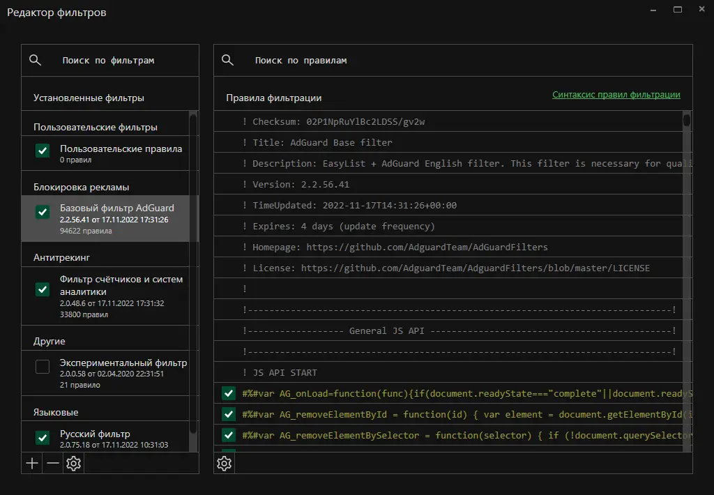 Adguard — это интернет-фильтр, предназначенный для защиты пользователей от опасных веб-сайтов, вирусов, мошенников и нежелательной рекламы. Программа отлично дополняет основную антивирусную защиту, предоставляя эффективную блокировку вредоносных, мошеннических и фишинговых ресурсов, а также предоставляя родительский контроль за онлайн-активностью детей. Веб-защита работает со всеми популярными веб-браузерами, регулярно обновляя базы данных с помощью крупнейших источников, таких как Google Safe Browsing, списки Web of Trust (WOT) и Malwaredomains. Более миллиона пользователей по всему миру доверяют этой системе для безопасного и комфортного серфинга в интернете.