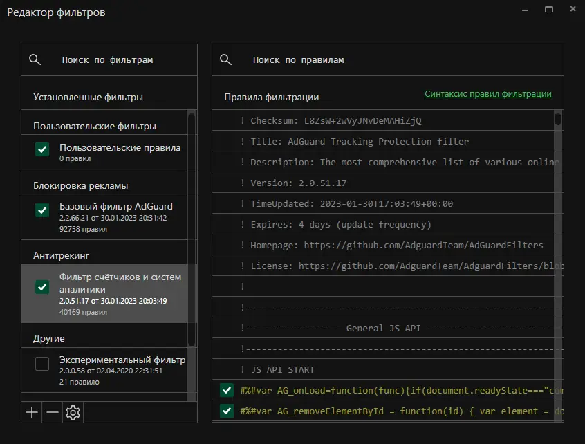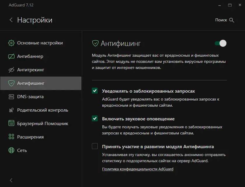 Adguard — мощный интернет-фильтр, обеспечивающий защиту пользователей от опасных веб-сайтов, рекламы и онлайн-угроз. Это эффективное дополнение к основной антивирусной защите, позволяющее контролировать безопасность и комфорт при работе в сети, а также защищать детей от нежелательного контента.