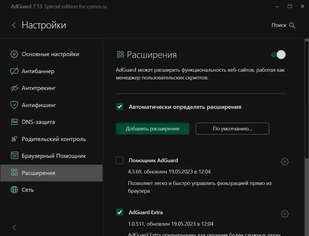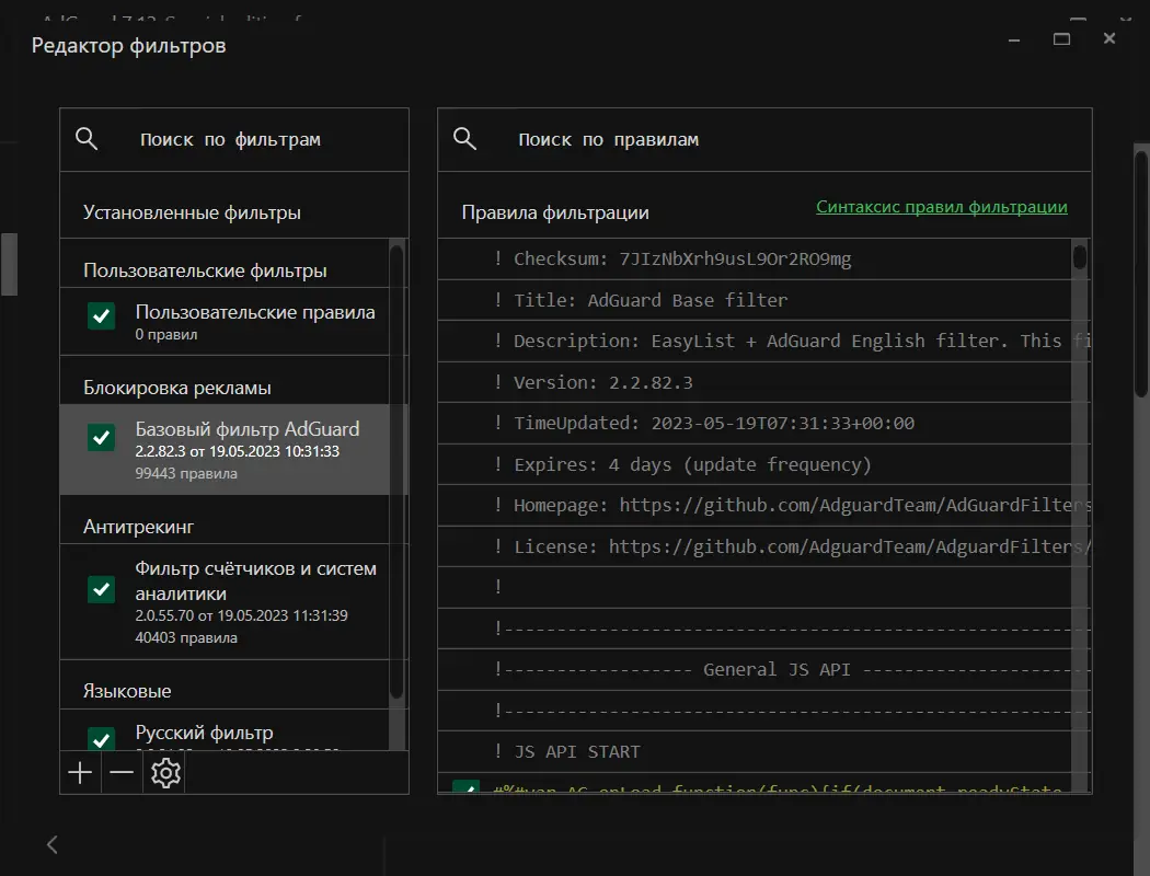 Adguard предлагает эффективную защиту и удобство использования, позволяя пользователям безопасно и быстро работать в интернете. Благодаря постоянным обновлениям баз данных, программа обеспечивает своевременную блокировку новых угроз и рекламных составляющих.