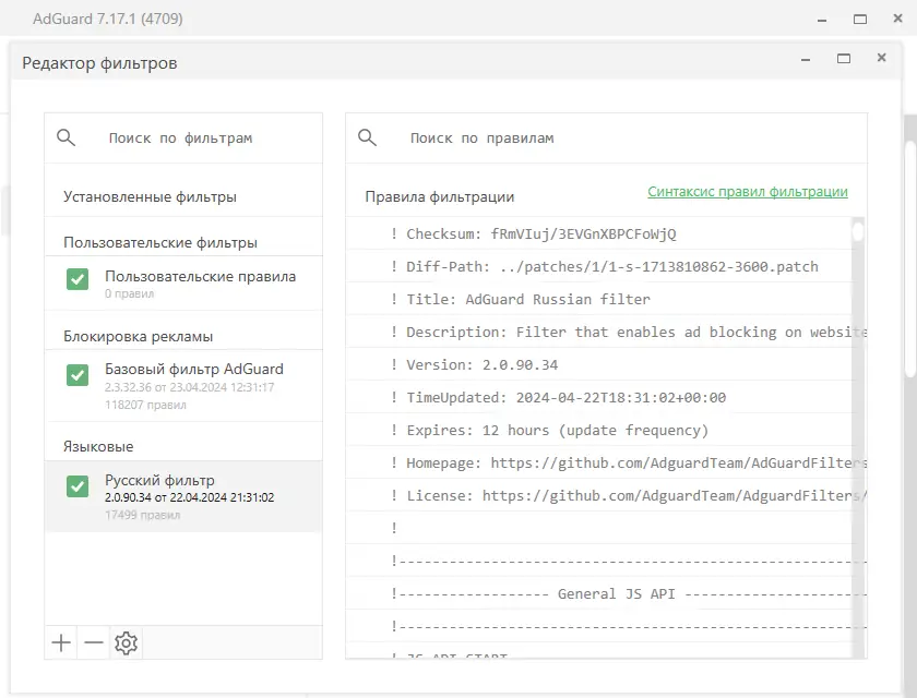 Выбирая Adguard, пользователи получают инструменты антибаннер, антифишинг, антитрекинг, родительский контроль, безопасный поиск и расширения для браузеров, а также возможностью локальных настроек и ведения статистики. Программа постоянно совершенствуется и обновляется, чтобы бороться с новыми угрозами и обеспечивать максимально комфортное использование интернета.