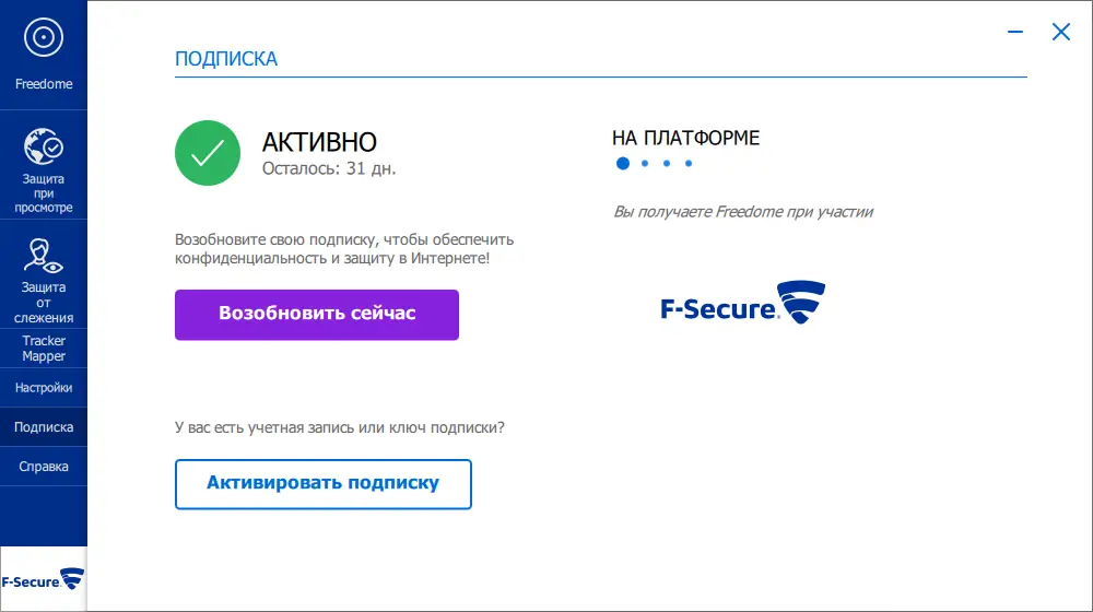 Для получения полного доступа и сброса триального периода потребуется установка FReset и регистрация в My F‑Secure с использованием временного email. После этого можно активировать бесплатную 31-дневную подписку, а при окончании — повторить процедуру заново.