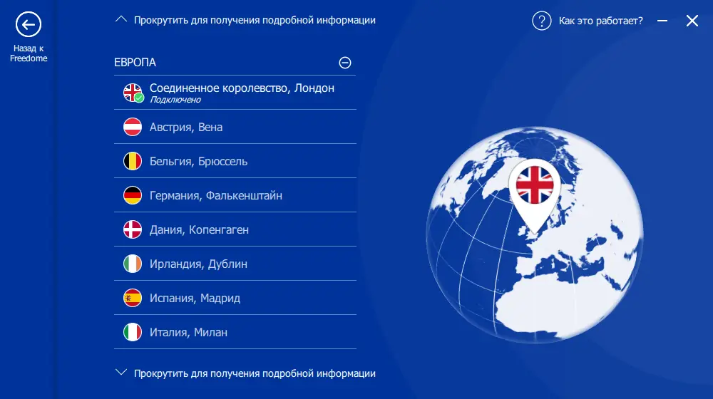 F-Secure Freedome VPN — надежное решение для полноценной защиты вашей онлайн-активности. Эта программа сочетает в себе множество функций: поддержку шифрования трафика, блокировку вредоносных сайтов, использование виртуальных локаций и автоматическую защиту Wi-Fi соединений. Благодаря наличию различных серверов по всему миру, включая города Амстердам, Лондон, Токио и многие другие,Вы можете легко скрывать реальный IP-адрес и получать доступ к контенту, недоступному в вашем регионе. Простота интерфейса и минимальные настройки позволяют выполнять все операции в один-два клика.