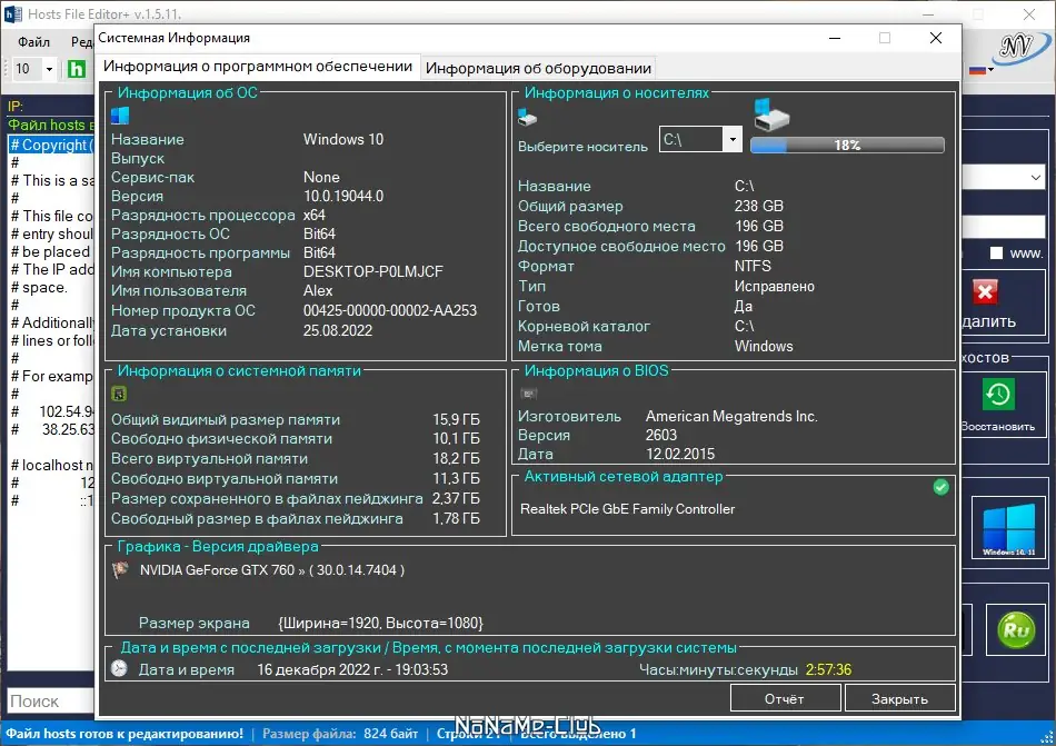 Hosts File Editor+ — небольшая, полностью бесплатная программа, которая позволяет легко и интуитивно управлять доступом к сайтам и сетевым параметрам через редактирование файла hosts. Пользователи могут быстро восстановить исходные настройки, очистить кэш DNS, блокировать нежелательные ресурсы или отключить системные службы, такие как Windows Update и Firewall. Утилита также предоставляет функции отключения телеметрии у популярных сервисов и приложений, таких как Microsoft, Adobe или социальные сети. Не требует инсталляции, что обеспечивает быстрый запуск и удобство использования.