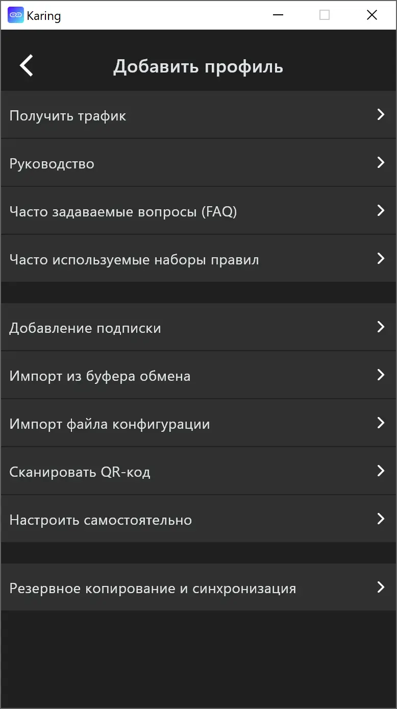Karing — универсальная утилита для настройки и управления прокси-серверами, совместимая с популярными протоколами и инструментами. Обеспечивает простой интерфейс и мощные возможности настройки для пользователей различных уровней опыта.