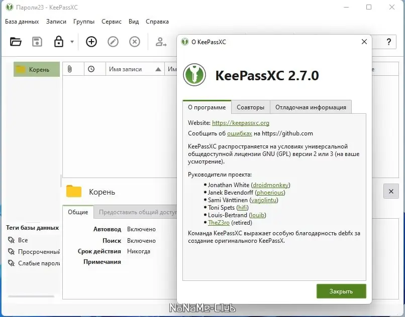 Программа KeePassXC представляет собой мощный инструмент для хранения паролей, обеспечивающий конфиденциальность и удобство в управлении регистрационными данными. Благодаря использованию современного шифрования, вся информация сохраняется в защищенной базе данных, которая не передается и не хранится в облаке. Это делает программу особенно актуальной для тех, кто ценит безопасность и хочет иметь полный контроль над своими паролями. Она совместима с различными операционными системами, включая Windows 7, Windows 8/8.1, Windows 10, Windows 11, а также Linux и Android.