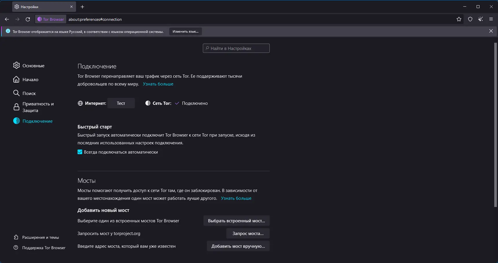 Дополнительно | Доступ к интернету, HTTPS-поддержка, возможность использования мостов |
