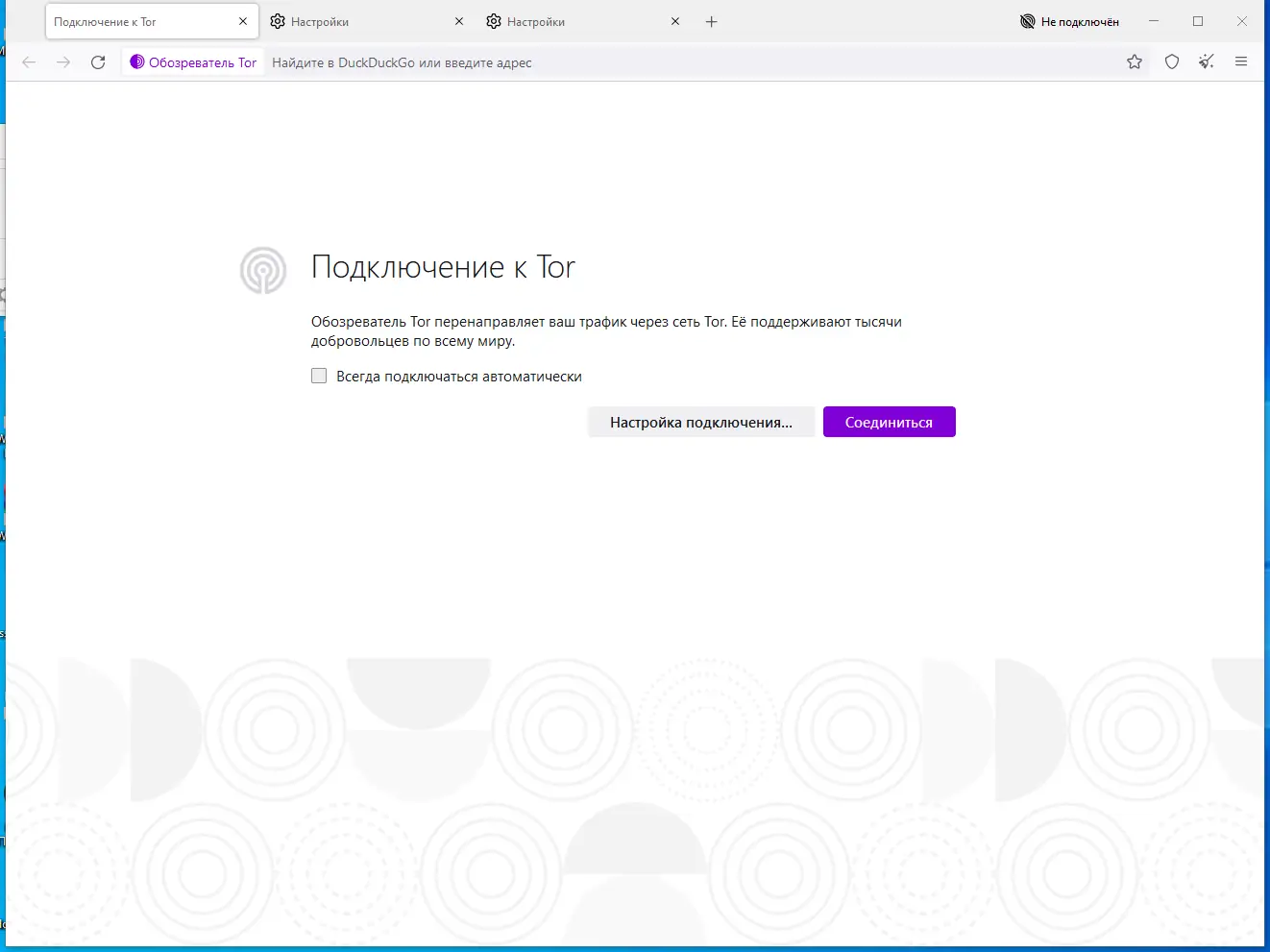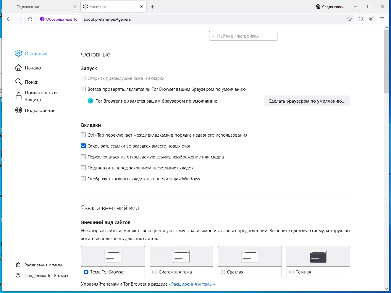 - Подождите запуска браузера, убедитесь в отображении статуса «Tor включен» в правом нижнем углу окна