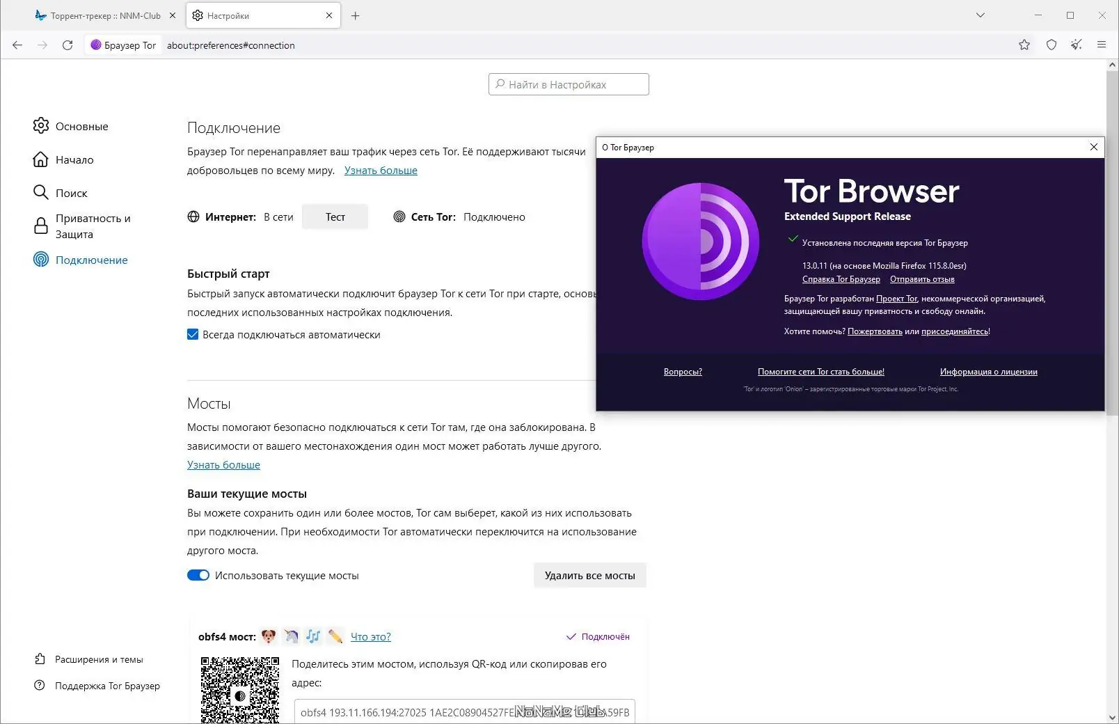 - Поддержка получения мостов для обхода блокировок и цензуры.