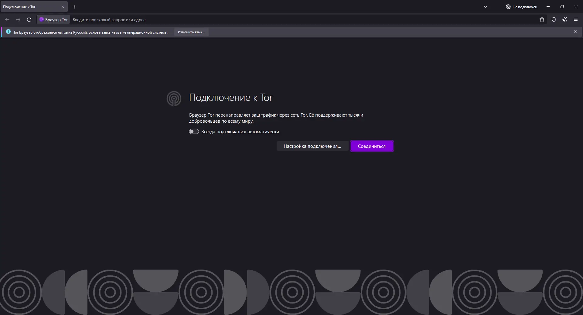 - Дождаться запуска браузера, убедиться, что в правом нижнем углу отображается сообщение «Tor включен».