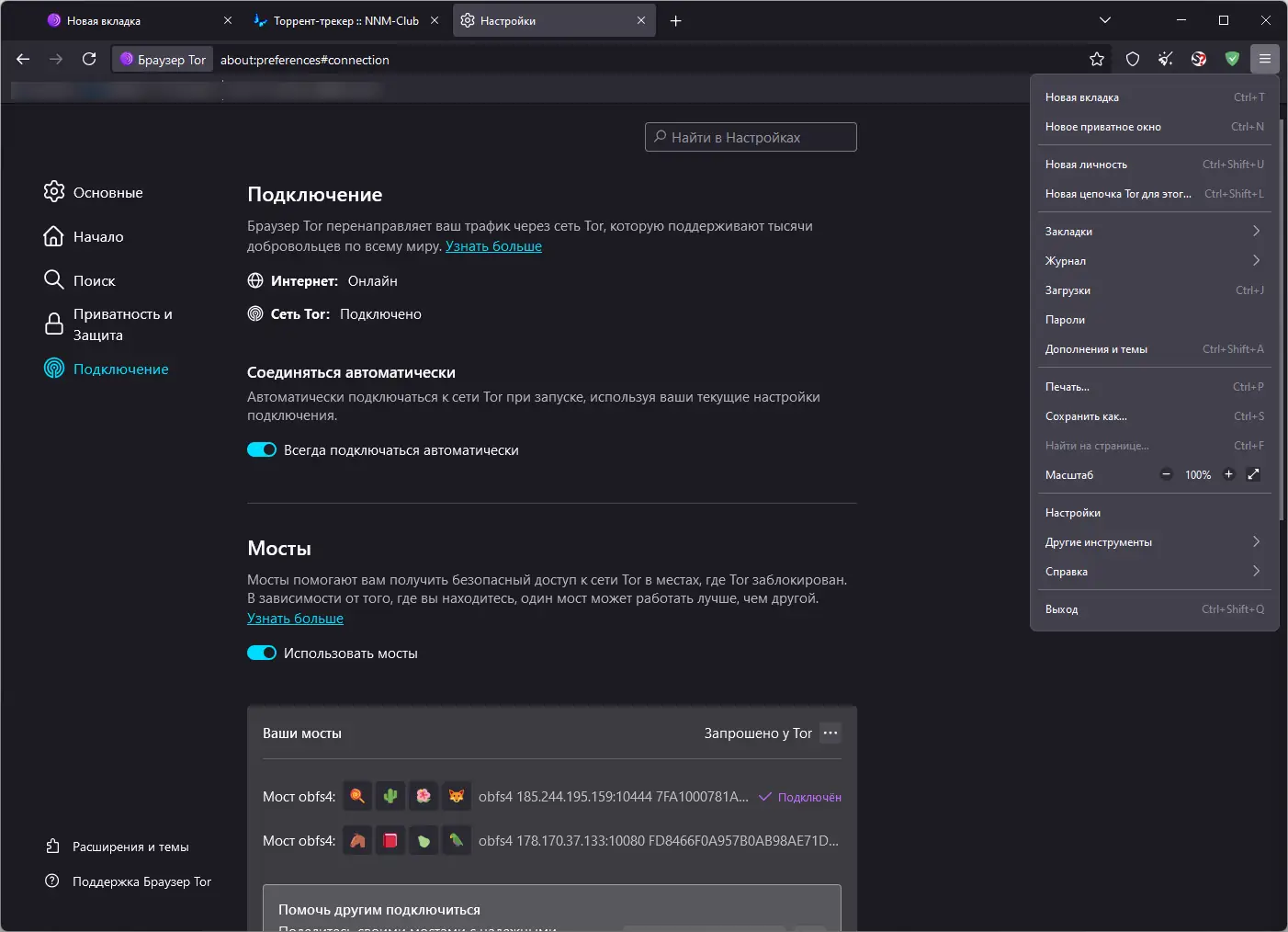 - Дождитесь запуска браузера Firefox с активированным режимом анонимности — в правом нижнем углу должно отображаться «Tor включен».