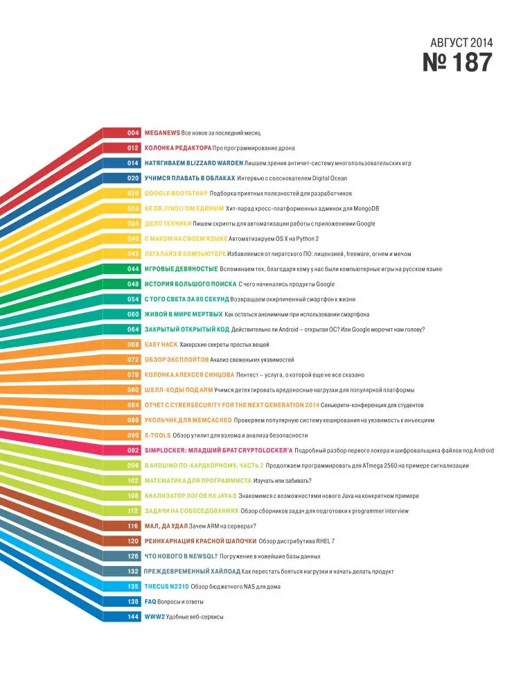 Данная коллекция включает в себя серию архивных PDF-файлов с журналом «Хакер» за май — август 2014 года, выпуск № 184 — 187. Журнал представляет собой ценное издание для тех, кто интересуется компьютерами, программным обеспечением, технологиями и хакерским сообществом. Помимо технических статей, издание содержит материалы о стиле жизни, здоровье и свободном времени. Уникальная манера подачи материала делает его особенно привлекательным для любителей качественной информации в области IT.